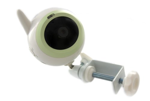 -- Terrible camera clamp, the camera rolls around until you tighten the entire thing, The clamp isn't tall enough to fit snugly on our baby's crib, which has a beveled edge. We have it angled and tightened on, but if you so much as drop a feather on it, it will move.